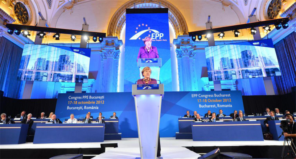 比利时_欧盟EPP会议 室内P5会议用LED显示屏,德国默克尔总理发表重要讲话