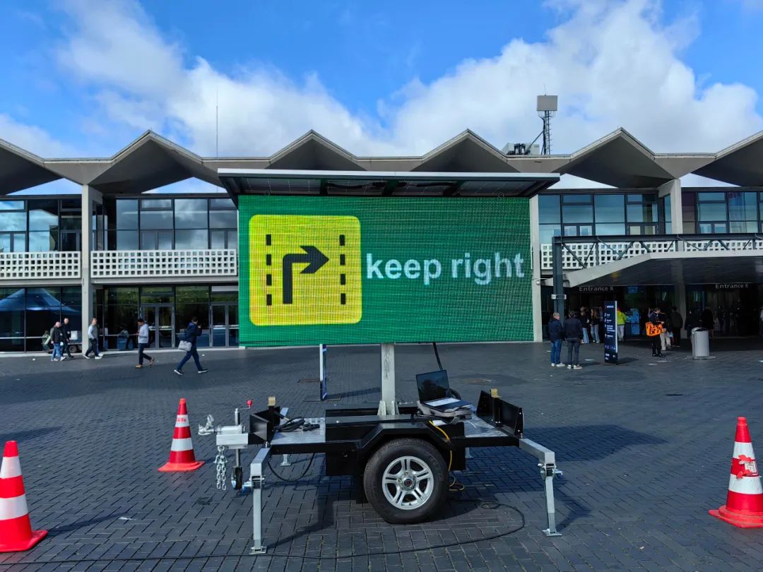 交通用的雷达测速屏也是另一亮点;这款雷达测速屏搭载太阳能充电板和蓄电池,并有滑轮设计,具有全天候不断电能力和高机动性。此款测速屏同样满足交通应用的高亮要求,并能根据光敏自动调节亮度。