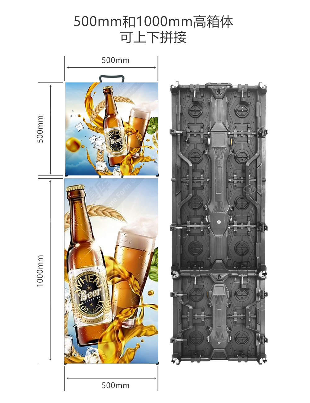 2、500x500/500x1000mm箱体,可上下拼接;